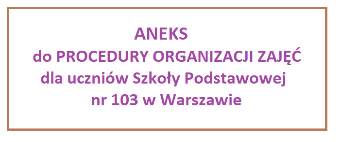 Aneks do Procedury organizacji zajęć dla uczniów Szkoły Podstawowej nr 103 im. Bohaterów Warszawy 1939-1945