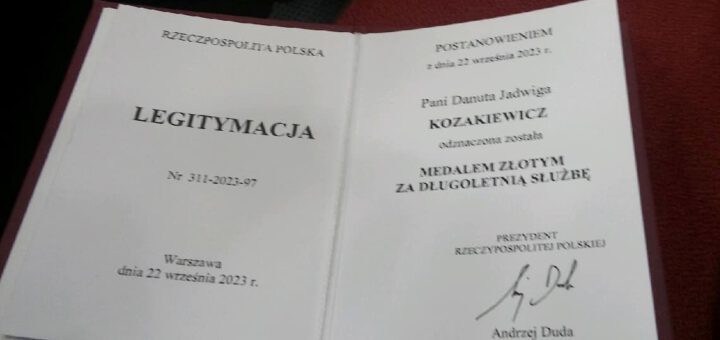 Pani Danuta Kozakiewicz, dyrektorka naszej szkoły, została uhonorowana odznaczeniem państwowym – Złotym Medalem za długoletnią służbę. Serdecznie gratulujemy. Życzymy dalszych sukcesów i wytrwałości w pracy...