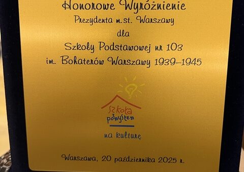 Mamy przyjemność poinformować, iż dostaliśmy Honorowe wyróżnienie Prezydenta m.st. Warszawy „ Szkoła z Pomysłem na kulturę”. Wyróżnienie otrzymaliśmy na prace za poprzedni rok szkolny 2024/2025. Dziękujemy...