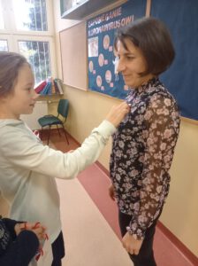 Mały Samorząd Uczniowski z okazji upamiętnienia odzyskania niepodległości przez Polskę w 1918 przygotował dla wszystkich pracowników szkoły kotyliony w barwach narodowych.