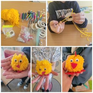 Wielkanoc to czas świętowania, radości i oczekiwania na nowe. Opiekun MSU Pani Martyna Równa-Witczuk zorganizowała dla MSU warsztaty wielkanocne na których uczniowie własnoręcznie stworzyli urocze kurczaki z włóczki.