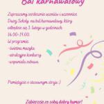 28 lutego odbyła się dyskoteka karnawałowa dla uczniów klas 4-8, którą zorganizował samorząd uczniowski. W programie: dj, gry i zabawy planszowe, rozgrywki sportowe.