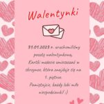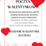 Ruszamy z pocztą walentynkową. Do 17 lutego można wrzucać walentynki do skrzynki przy sali 101 na pierwszym piętrze. 18 lutego walentynki zostaną rozdane uczniom.