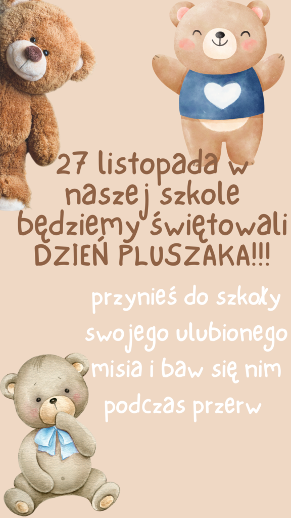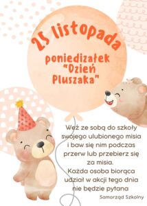 Zapraszamy wszystkich uczniów dużej szkoły do wzięcia udziału w akcji „Dzień Pluszaka”