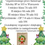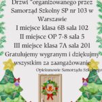 “Najładniej Ozdobione Świąteczne Drzwi ”organizowanego przez Samorząd Szkolny SP nr 103 w Warszawie
