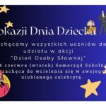 Zapraszamy wszystkich uczniów do akcji samorządu na dzień dziecka! Wszystkie szczegóły na plakacie.