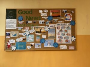 Pani Psycholog Ewelina przy pomocy samorządu szkolnego przeprowadzała podczas godzin wychowawczych warsztaty z komplementowania i budowania pozytywnych relacji. Celem warsztatów było również przypomnienie uczennicom uczniom o akcji GoodNews naszej szkoły. Na koniec zajęć uczniowie pisali kartki komplementów, które można podziwiać na tablicy GoodNews i robili zdjęcie pełne uśmiechu.